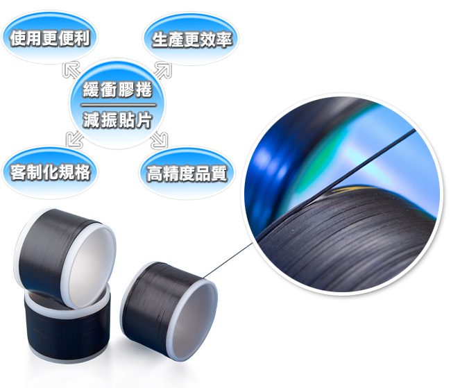 主要是提供電子產品在防漏光、防震、耐衝擊、縫隙密合等功能,是一符合電子廠的綠色夥伴 (Green Partner ) ,有第三單位的認證。 使用極方便、可提升產出效率維持高精度品質,可根據客戶需求,而量身定做。 |